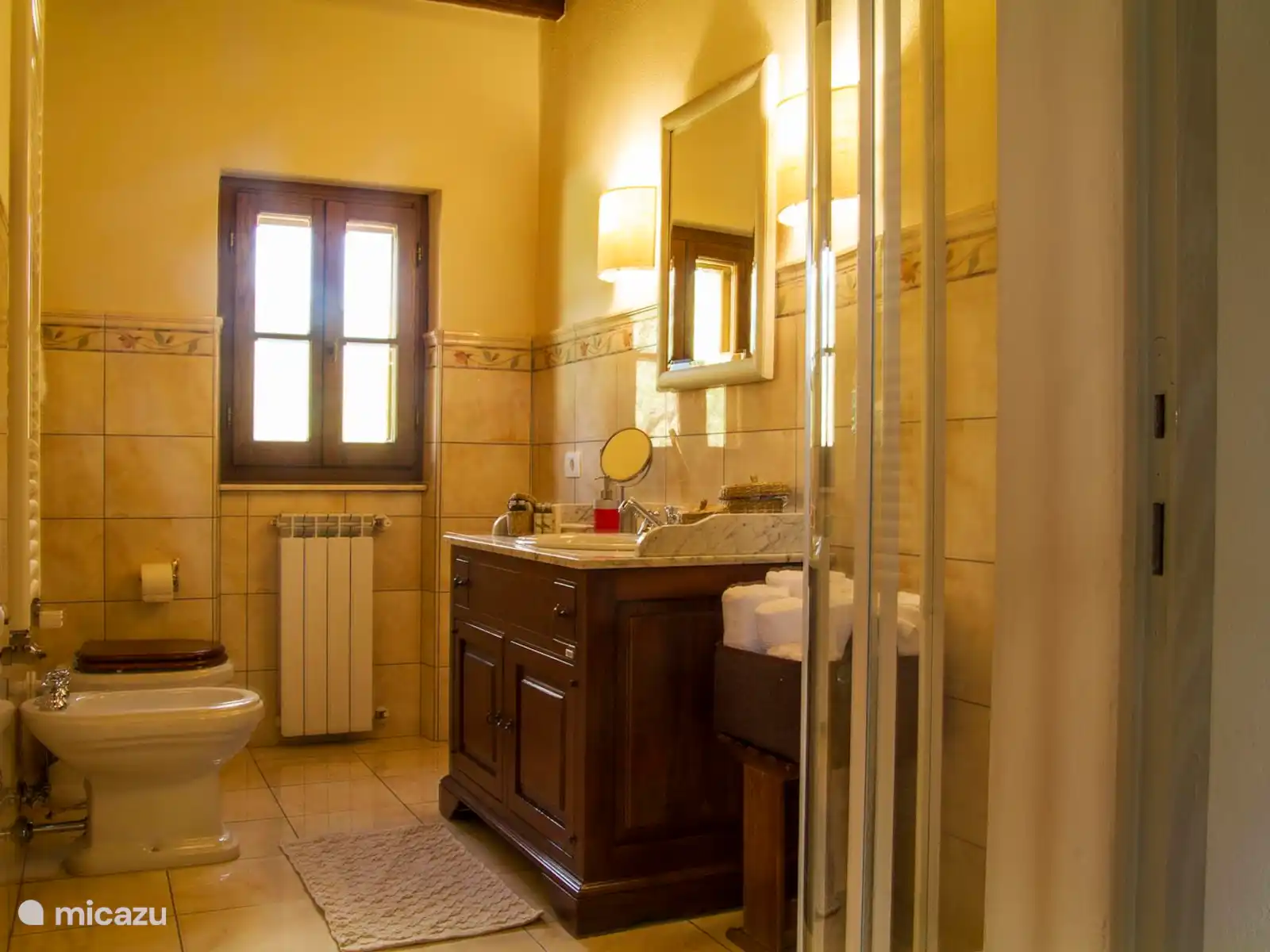 Dispondrás de una preciosa piscina con escaleras romanas y rodeada de un gran solárium con tumbonas y un cenador con vistas al Val di Chiana. La villa dispone de aparcamiento privado.