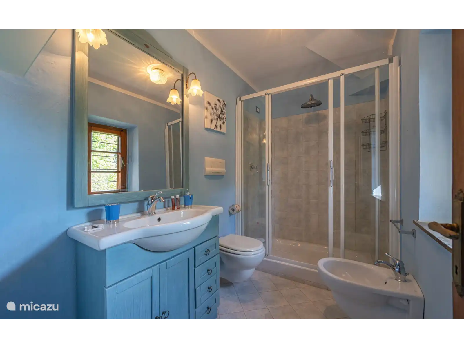 Villa Marconi puede alojar hasta 8 personas (3 dormitorios + un sofá cama). Se desarrolla en dos niveles, conectados tanto internamente por una escalera de caracol como por una escalera exterior de piedra.