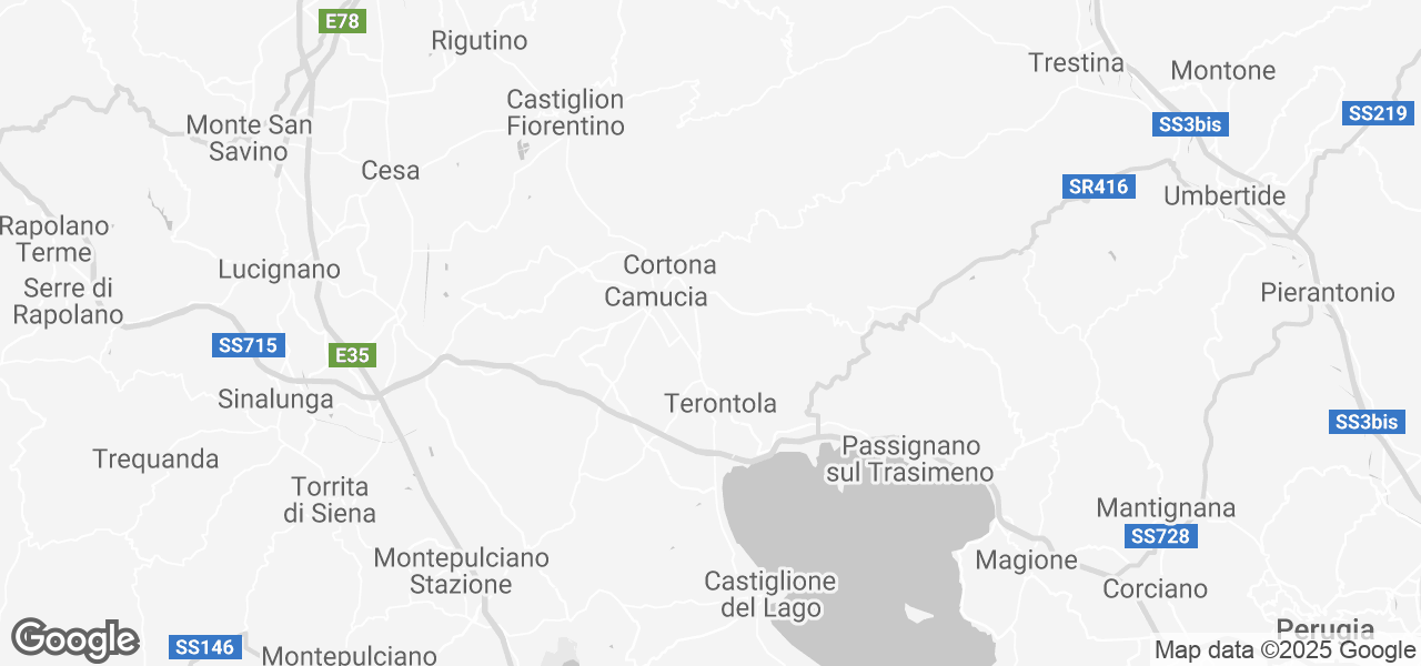 Cortona 5 km, Lago Trasimeno 20 km, Arezzo 32 km, Montepulciano 35 km, Perugia 54 km, Montalcino 69 km, Siena 72 km, Asís 74 km