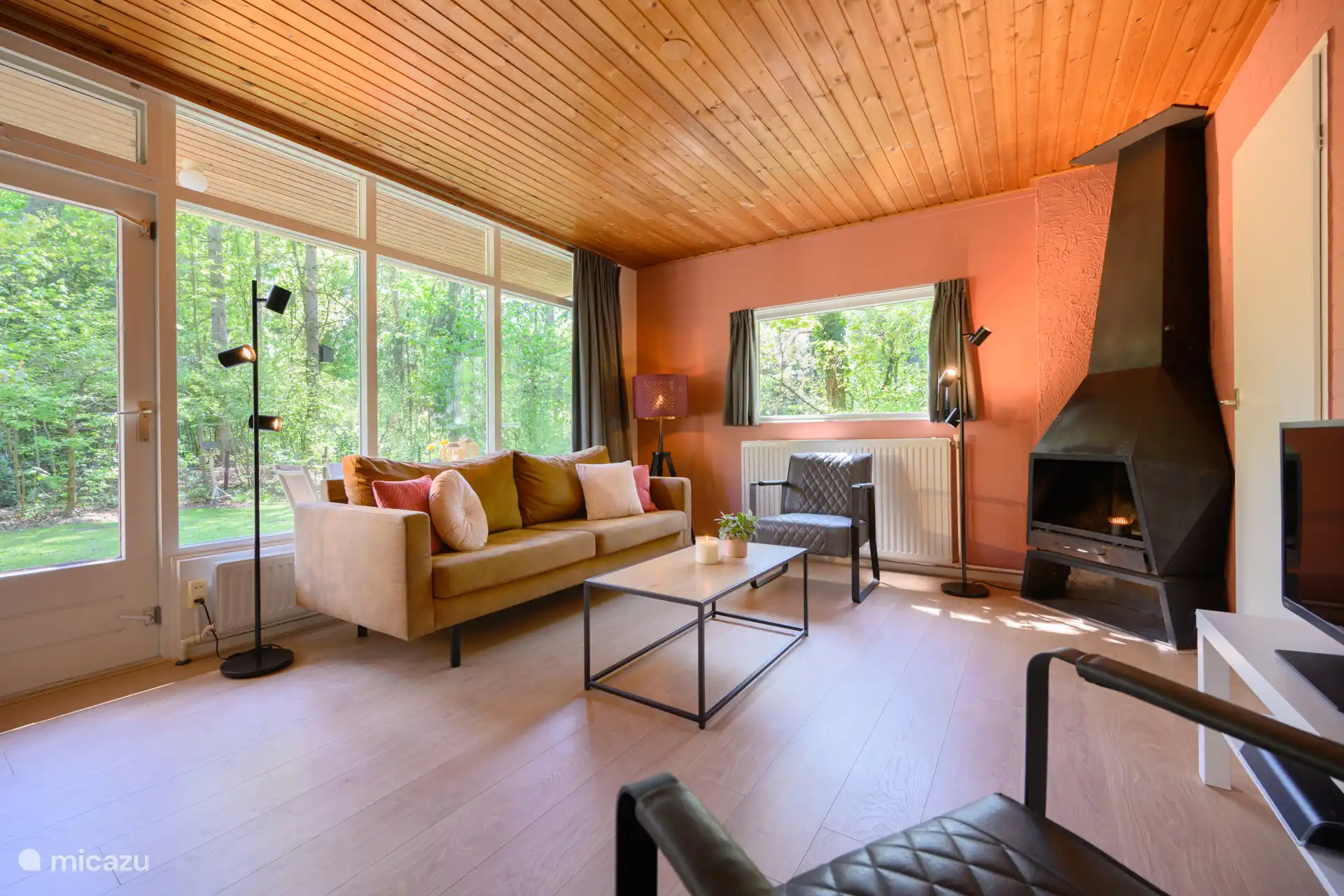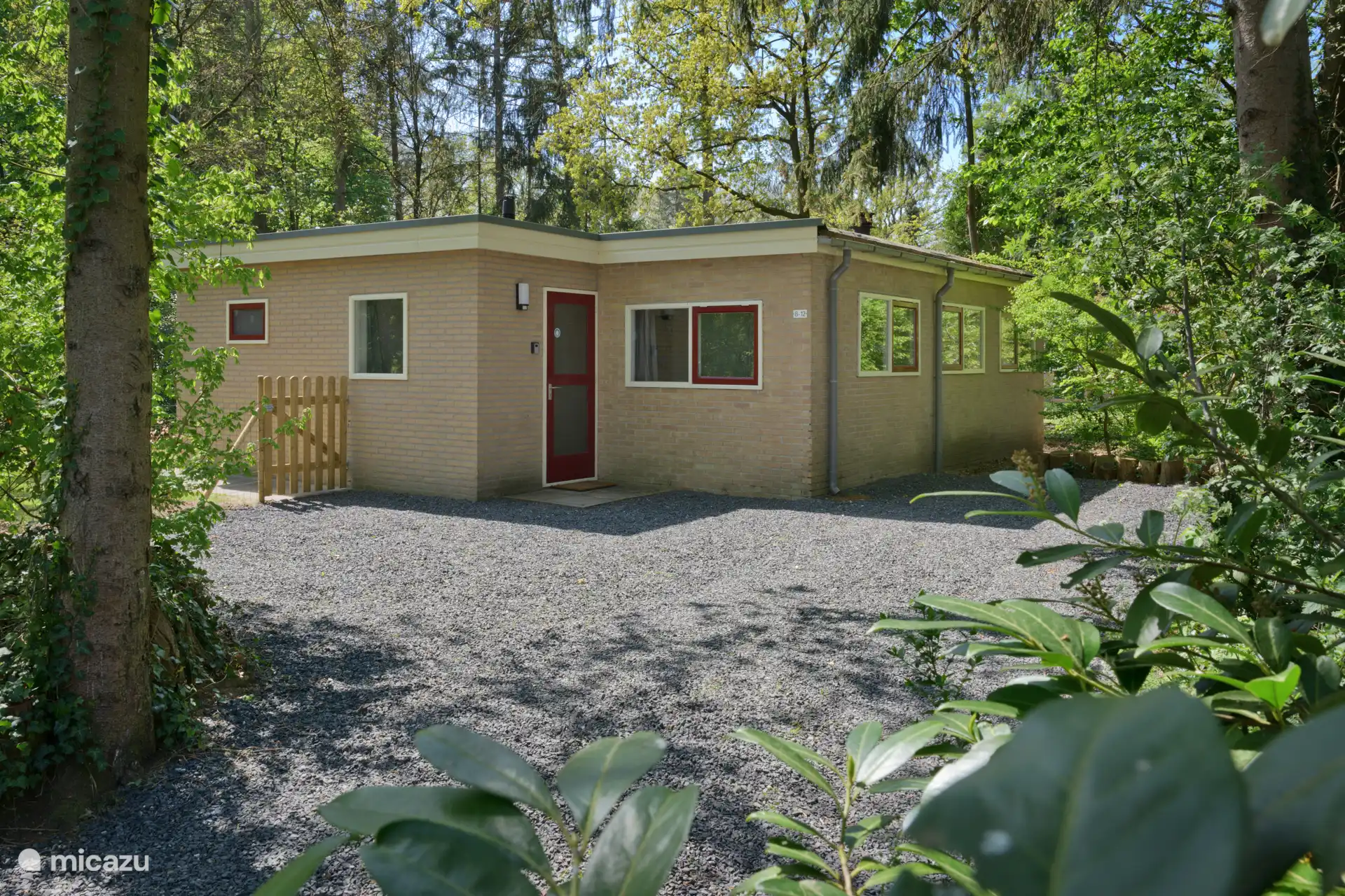 Las casas de vacaciones están situadas en el parque forestal 't Rommelgebergte, en un camino (callejón sin salida) con solo tráfico local (6 casas a la izquierda y 6 casas a la derecha).