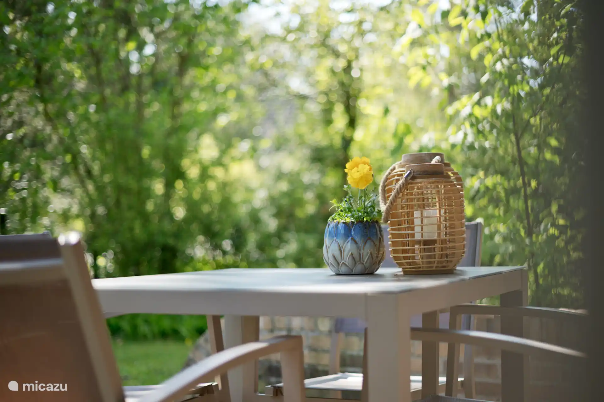 El jardín está rodeado de árboles, pero aun así siempre hay un punto de sol y sombra debido a la anchura y profundidad del jardín.