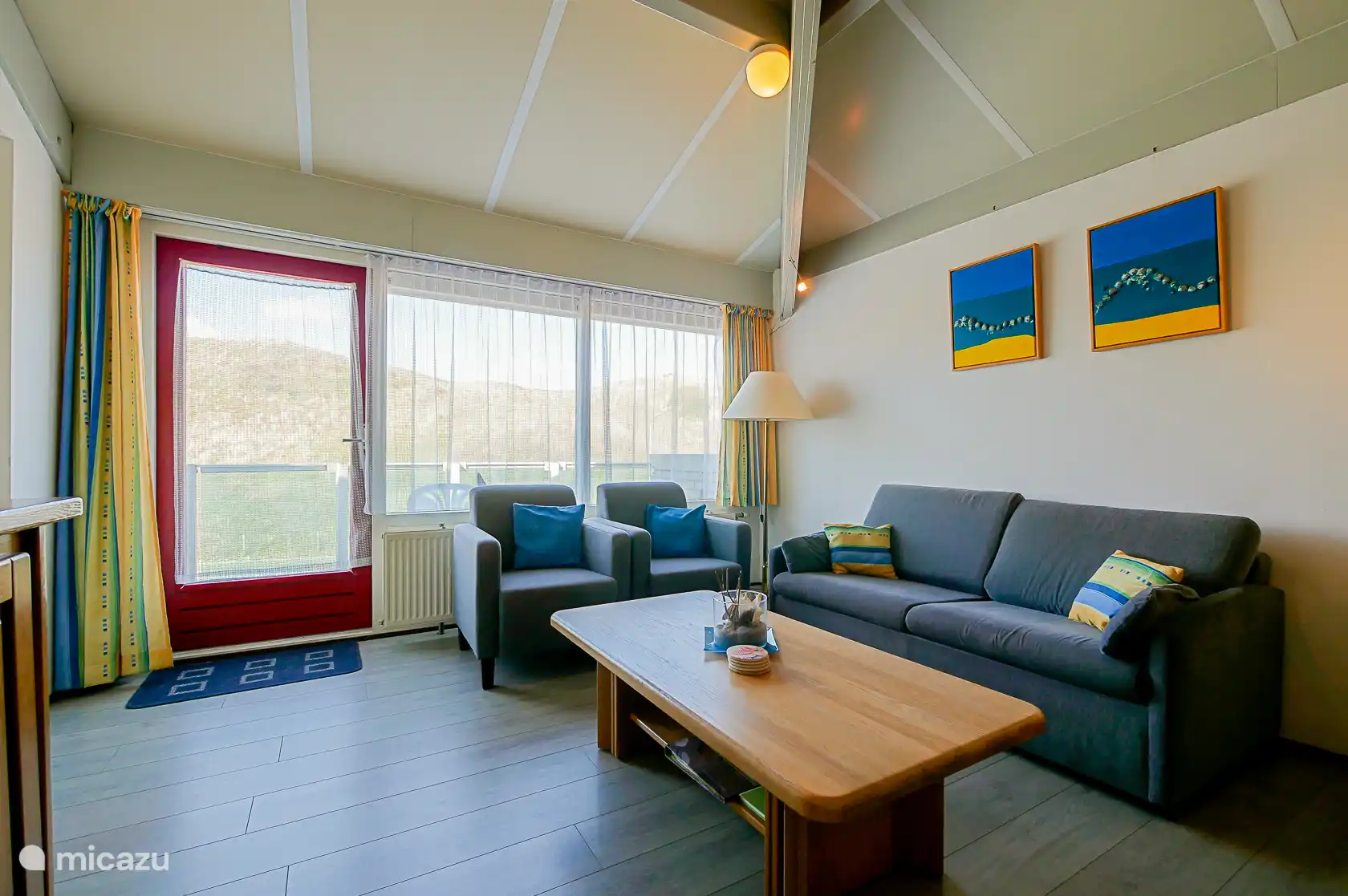 Parque de bungalows De Zandloper está situado justo al pie de las dunas y a poca distancia a pie de la playa. En pocos minutos puedes llegar al mar para un baño refrescante o un largo paseo por la costa. En el propio parque encontrarás dos modernos pabellones de playa abiertos todo el año, así como un comedor y un snackbar. Además, hay un campo de fútbol americano y una cancha de baloncesto para niños y mayores. Gracias a la amplia distribución del parque, siempre hay espacio suficiente para relajarse y jugar.