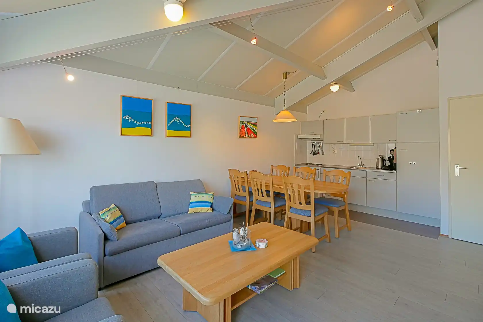 La casa de vacaciones Solea es adecuada para hasta seis personas y ofrece mucho confort. El espacioso salón está amueblado con un cómodo sofá lounge donde puedes relajarte juntos tras un día en la playa. La cocina de planta abierta está completamente equipada, por lo que puedes preparar fácilmente tus propias comidas. La casa tiene tres dormitorios, uno con cama individual y dos con dos camas individuales cada uno. El baño está equipado con ducha y bañera independiente, lo que proporciona un confort extra durante la estancia. Al exterior se puede disfrutar de un gran jardín completamente cerrado con una terraza parcialmente cubierta, ideal para familias con niños y también apto para mascotas. Por supuesto, hay Wi-Fi gratuito.