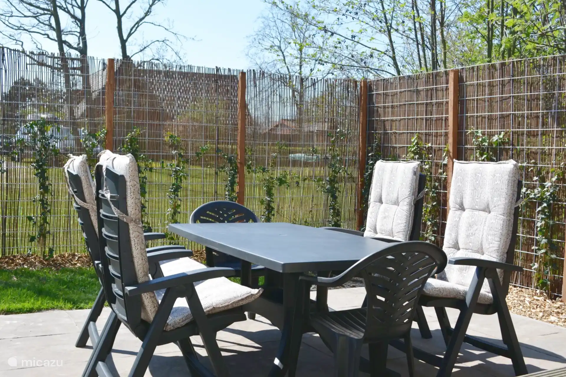 El amplio jardín completa la estancia y ofrece relajación tanto para jóvenes como para mayores. Los niños pueden jugar con seguridad en la cama elástica, mientras disfrutáis de las tumbonas o cenáis juntos en la mesa del comedor. También hay una casa de jardín. Aunque el jardín no está completamente cerrado, ofrece mucho espacio y privacidad para disfrutar del aire libre.
