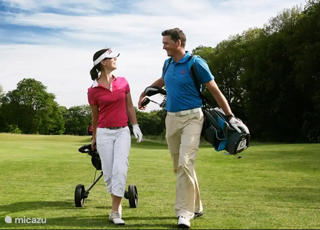 Un campo de golf de 27 hoyos se encuentra a poca distancia. Puedes caminar por el bosque hasta el campo de golf.