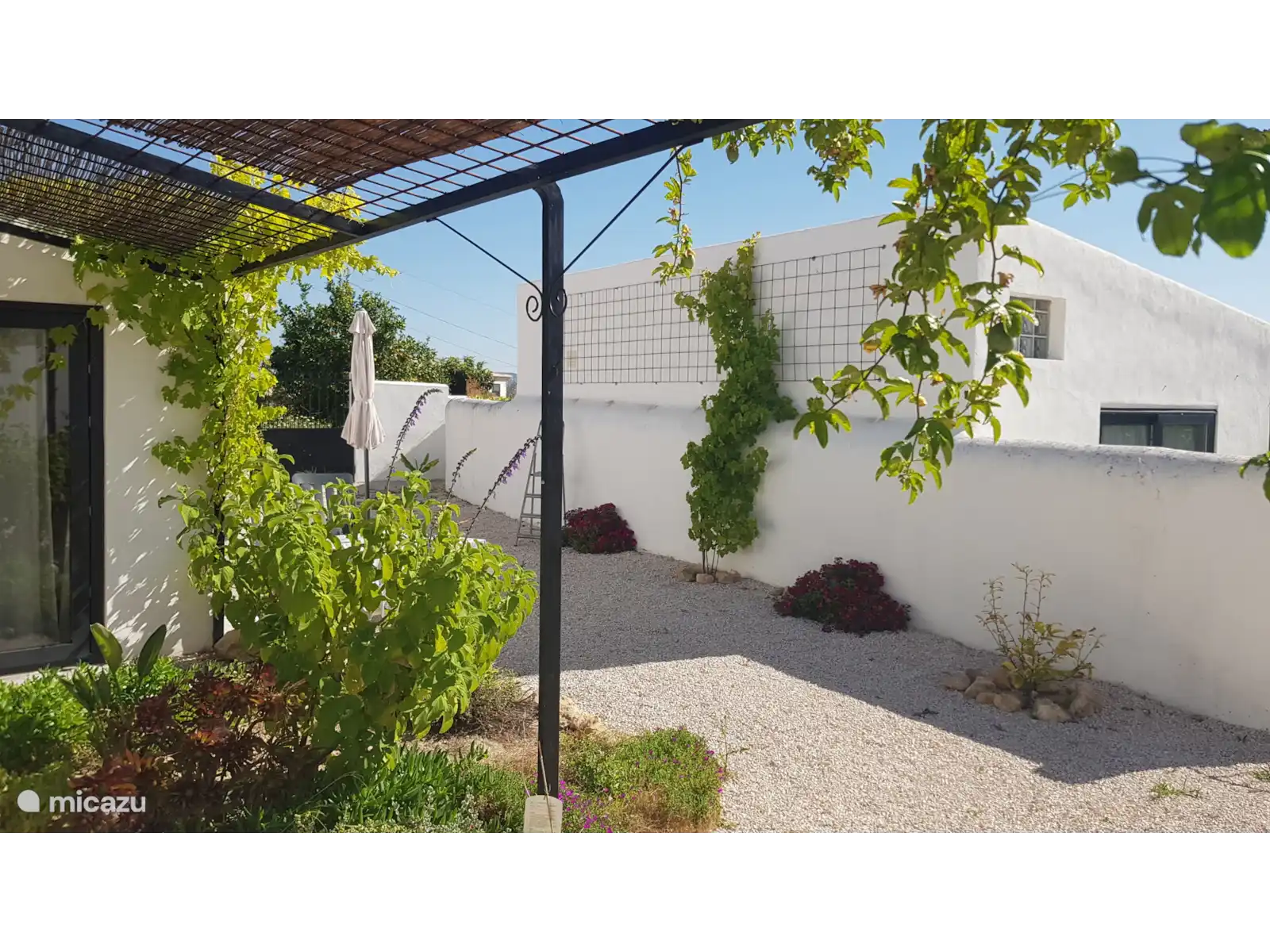 La puerta principal de Casa Oceano da acceso al salón con cocina abierta. Desde el salón se accede a un recibidor. Esto da acceso al amplio dormitorio y al amplio baño. Casa Oceano también tiene un jardín con hermosas vistas a las montañas.
