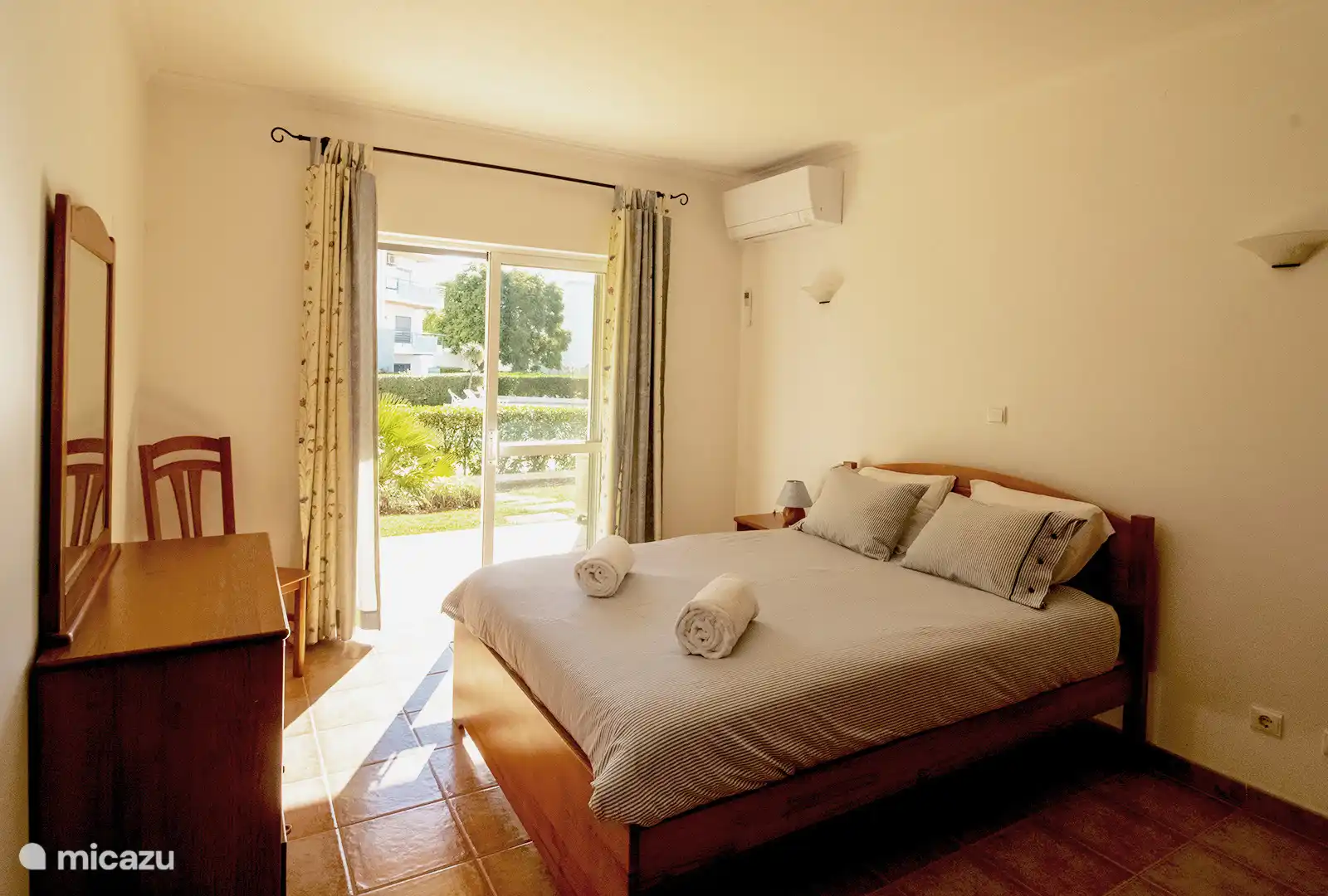 Este encantador apartamento cuenta con un dormitorio con cama doble, un baño con bañera y una cocina y sala de estar totalmente equipadas con acceso directo a la terraza, el jardín y la piscina. Incluye todas las comodidades esenciales, incluyendo aire acondicionado tanto en el salón como en el dormitorio. Ideal para pareja, puede alojar hasta 4 invitados, ya que el sofá se convierte en dos camas individuales.