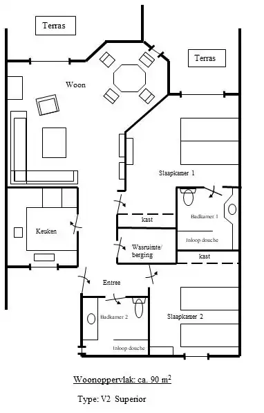 Comedor independiente, Smart TV (aprox. 100 canales, incluidos 5 holandeses), Internet (con Wifi, por supuesto), cine en casa.