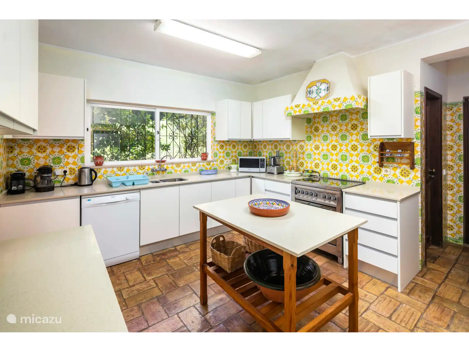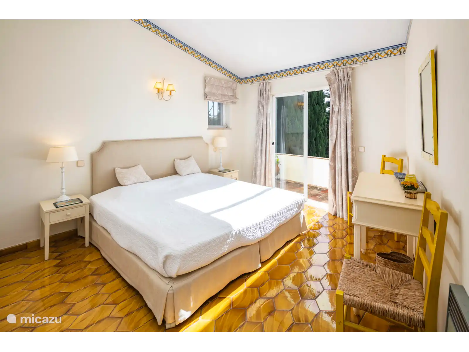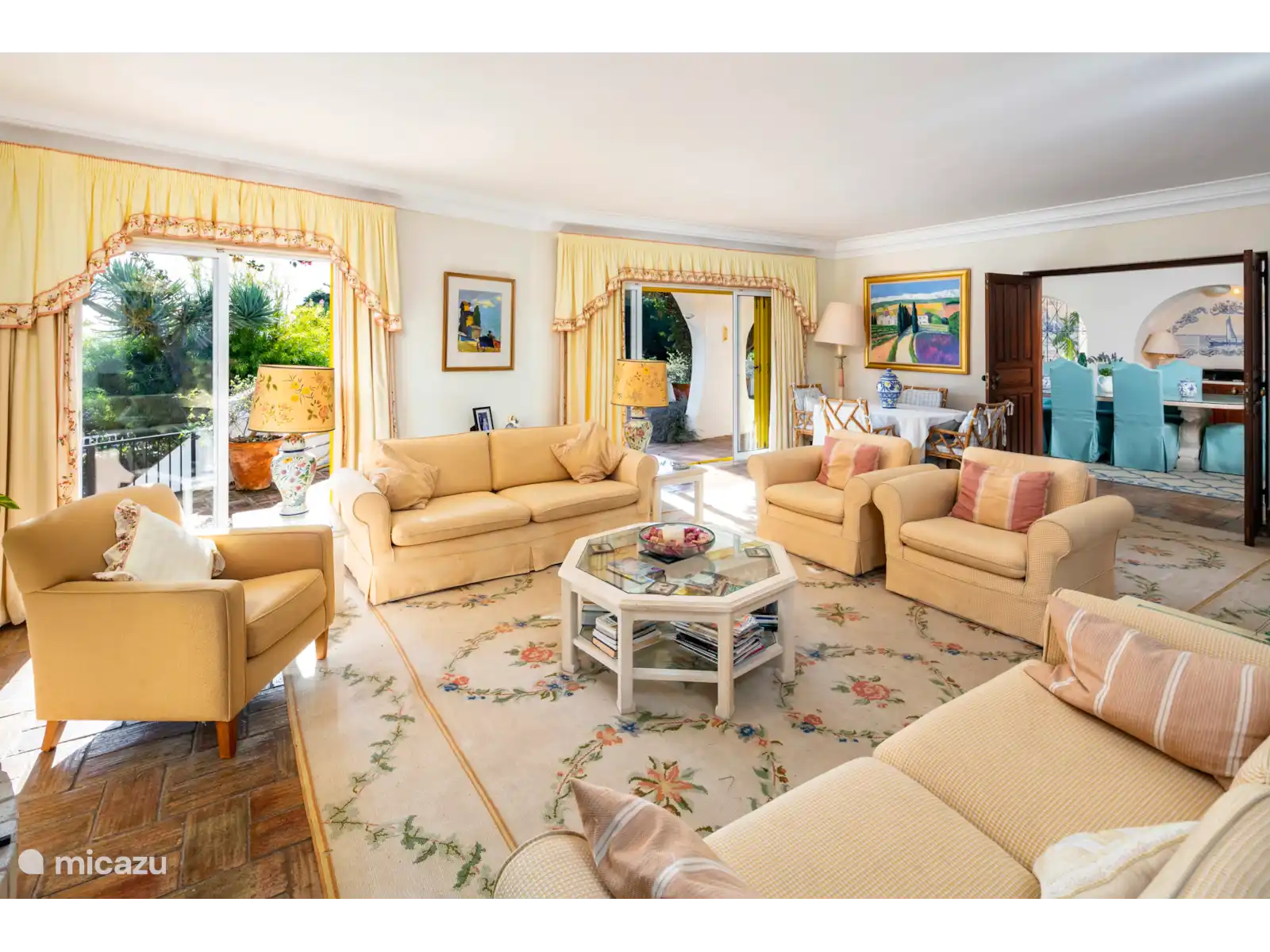 El espacioso salón está cómodamente amueblado con muchos sofás y sillones, una preciosa chimenea y puertas de patio que dan a una encantadora terraza cubierta, perfecta para cenar al aire libre. El comedor formal sale del salón y tiene capacidad para 12 personas. La cocina está bien equipada con azulejos alegres y retro. También hay una útil sala de servicio con lavadora y un frigorífico/congelador adicional. Hay 3 dormitorios en este nivel.