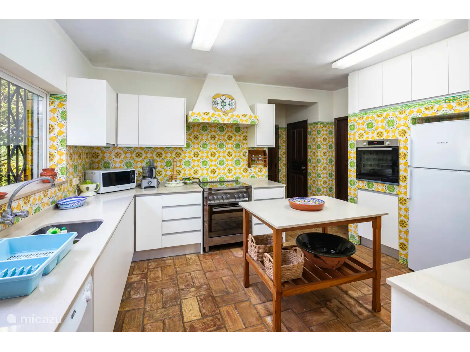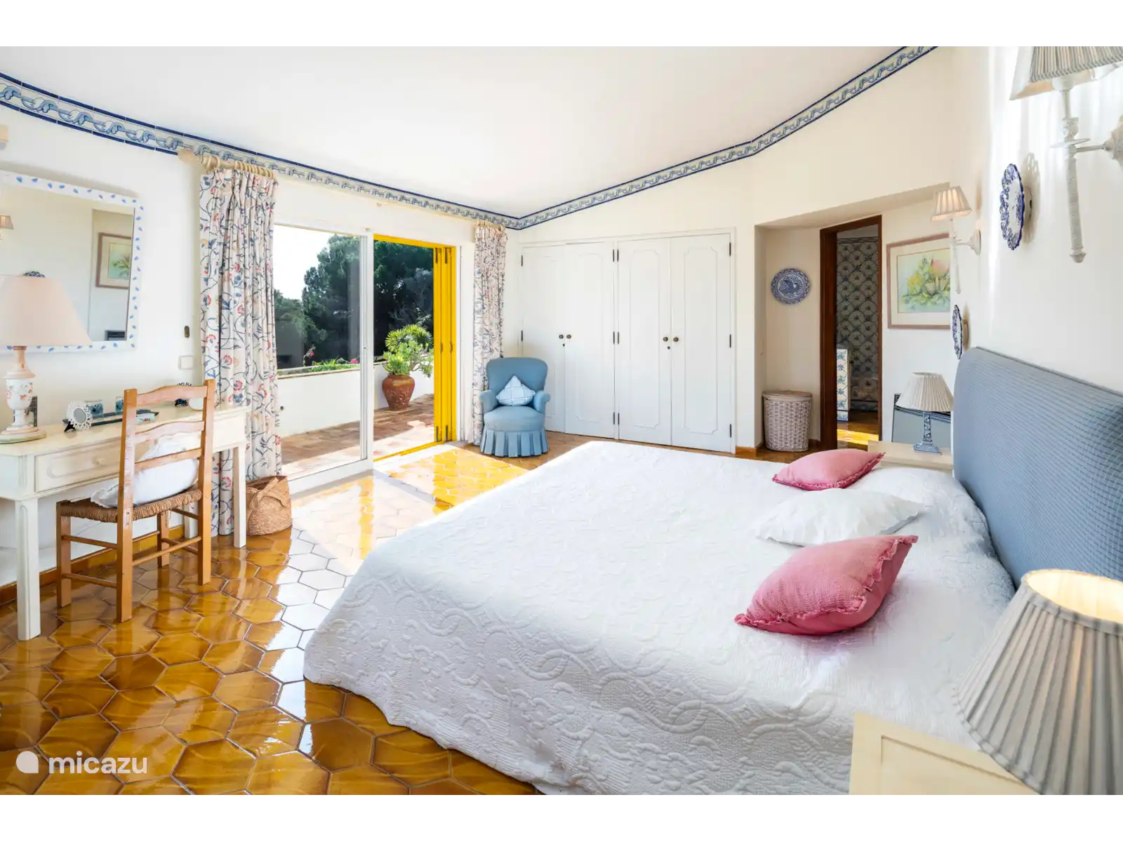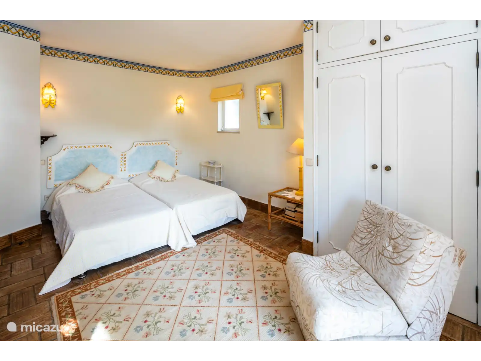El espacioso salón está cómodamente amueblado con muchos sofás y sillones, una preciosa chimenea y puertas de patio que dan a una encantadora terraza cubierta, perfecta para cenar al aire libre. El comedor formal sale del salón y tiene capacidad para 12 personas. La cocina está bien equipada con azulejos alegres y retro. También hay una útil sala de servicio con lavadora y un frigorífico/congelador adicional. Hay 3 dormitorios en este nivel.