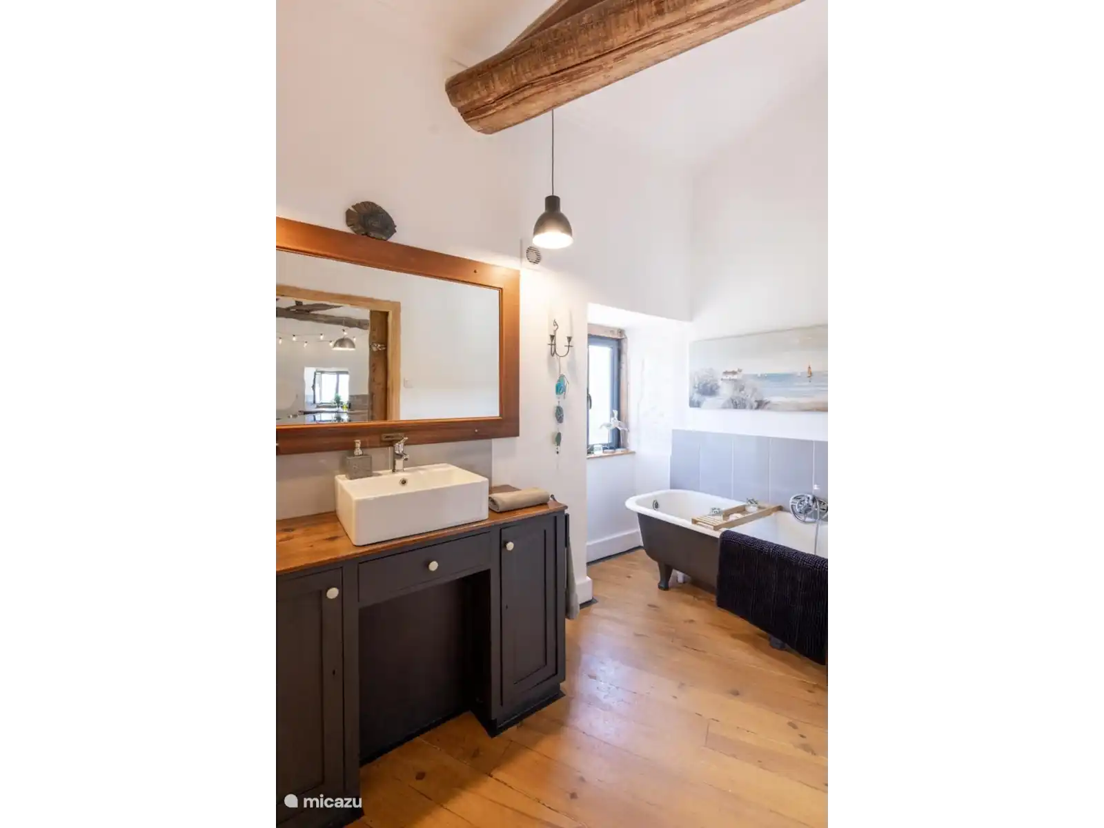 - Amplio cuarto de baño con aseo y bañera.